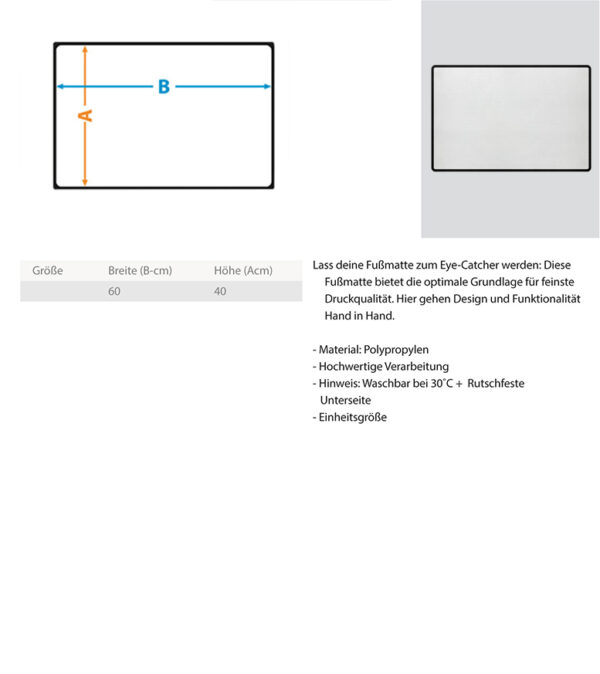 Dieses coole Motiv ist eine tolle Alternative zum alltäglichen Standard. Die Fußmatte ist auch perfekt als Geschenk geeignet. Wir bieten Qualitätsware auf höchstem Niveau. Fußmatte mit rutschfester Gummi-Rückseite. Material: Polypropylen.